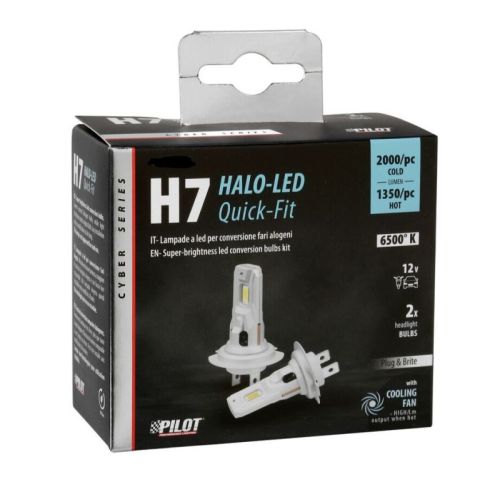 "12V Halo Led Cyber Series conversion kit - (H7) - 22W - PX26d - 2 pcs - Box Super-brightness. Lumens exceed halogen bulbs, while light distribution match original bulbs. Easy installation with no modifications to the lamps. Special led chips of the latest generation. Extraordinary bright light, long life. Fanless heat dissipation. Super speed cooling fan. ? Pieces per pack: