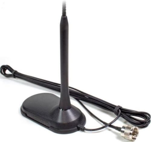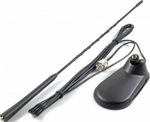 "? 1/4 wave ? 1,1/1 preadjusted ? + 3 dBi ? 250 Watt P.E.P ? 800 kHz (80 cx) ? 0.160 kg ? 490 mm ? Magnetic ? Dual helical"