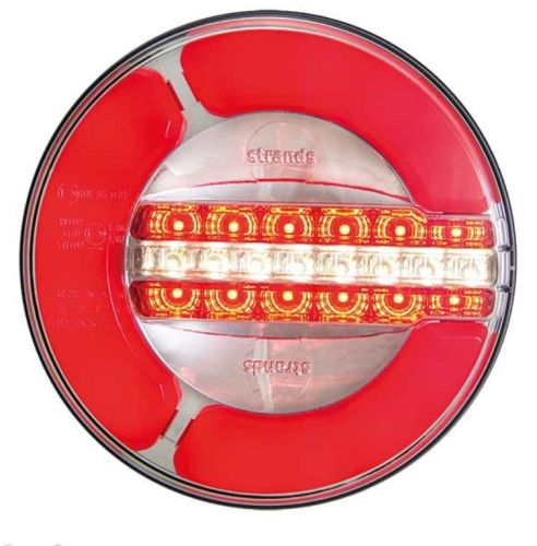 "Voltage: 12-24V DC Functions: 3 (Tail/Brake/Dynamic Indicator) IP-Class: IP68 Cable length: 2000mm Diameter: 142mm Depth: 38mm CC: 45mm E-approved: 7, 6 "