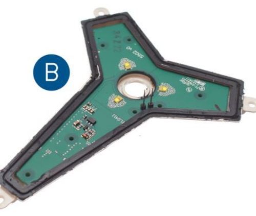 "ORANGE LED 24V replacement emitter for the large star on the front of Mercedes Actros trucks. It replaces the original white emitter. These can only be used for stars that already have lights built in. To mount this emitter, you will have to dissassemble the original logo, replace the emitter and then finally glue the parts together again. This takes about 30 minutes. Instructions Note A: The lamp-part is assembled with the logo with the 3 plastic-tabs that are bent out over the lamp-part. Straighten the plastic, then you can pull the two apart. Note B: The clear plastic part and the white plastic part that the lamp-part consists of, are glued together with a black glue. Use a knife and a screwdriver to seperate the two parts. Be careful. After this you can easily remove the original emitter and put the yellow one in. Before you glue the parts together again, you should remove the old glue. Logo and lamp parts are put back again, same way, as you took them apart. Notice that the star with a light in is an extra accessory that is bought from Mercedes. If you do not have light in the front, you cannot use this to get it."