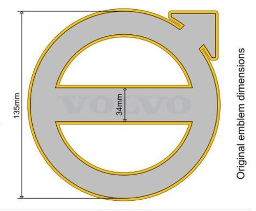 ? Volvo FH4/FM4 2013->2020 + Volvo FE/FL 2020-> facelift ? ?13cm ? 24V ? Dual color Cold White + Orange ? To be mounted behind the original logo