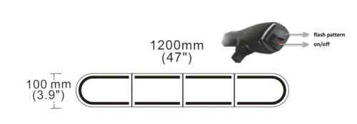 ? 12V / 24V ? 204LED ? Bracket with bolt mounting ? Aluminum housing / SMOKE PC lens ? 310cm cable + cigarette plug ? 6 different flash types ? 86W ? IP67 ? ECE R10/R65 ? 120cm x 10cm