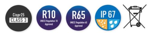 ? 12V/24V ? Mounting 3-screws ? Lens PVC ? Housing ABS ? 36LED ? 22W ? 4 warning flashes ? Wire 250mm ? ECE R10/R65