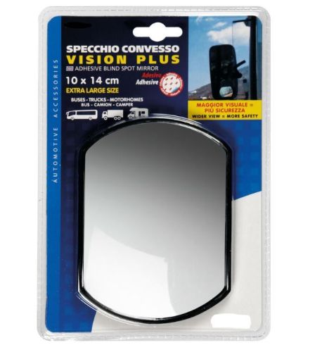 "?Vision plus, adjustable adhesive blind spot mirror ?Suitable for side mirrors. Allow a widen viewing area. ?Removes blind spots not visible by side mirrors ?Dimension: 140x100 mm"