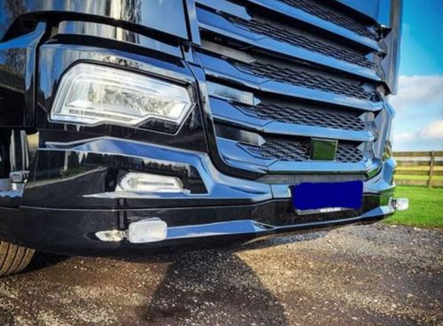 Bumper Spoiler DAF NGD XF/XG/XG+ + 2x lamp TALMU WHITE Specially designed for the new DAF NGD. Perfect fit Unique Design Easy to morn Great looks High quality Polyester product Our light options are handmade. Delivery time may vary. Suitable for DAF NGDs fitted with an aerodynamic bottom plate. This product requires pre-treatment and primer. Supplied in unpainted gelcoat white. Must be measured before spraying and mounting.