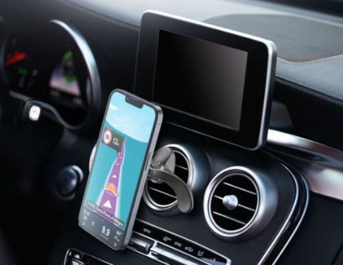 "TOUCH MAG AIR VENTS is the in-car magnetic smartphone holder designed specifically for iPhones with MagSafe system.Touch Mag Air Vents is an extremely SAFE, SIMPLE AND STABLE phone holder: the magnets are designed to hold an iPhone firmly in place and not interfere with its functionsThanks to the innovative hook coupling, Touch Mag Air Vents fastens to all air vents, both of standard and round designs. ? Car holder for MagSafe ? Magnets designed to keep iPhone firmly in position and to not interfere with its functionality ? Fixing on air vents (standard and round) ? Swivelling ball joint with 360? rotation ? Pack contents: in-car smartphone holder, instructions"