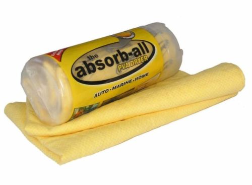 "The Absorb-All is an ultra-absorbent chamois that dries surfaces immediately because it absorbs super-fast water. It can even absorb up to five times its own weight in water. The chamois wringes out easily and is resistant to tearing. Dries perfectly without streaks. Ideal for cars, boats, windows, bathrooms, etc. Absorbs up to 5 times its weight in water. Does not fluff. Excellent resistance to oils and chemical products. Machine washable. Delivered in a tube."