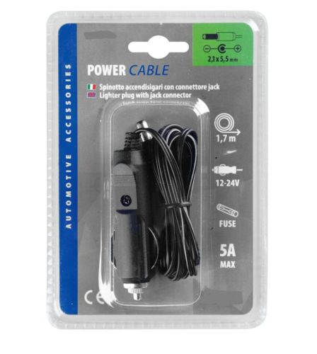 "? Cigarette lighter plug with jack connector, 12/24V ? Enables the power old electronic appliances through the cigarette lighter socket of the vehicle. ? With protection fuse, 170 cm cable ? Dimension: Standard - Max 5 A - Jack 2,1x5,5 mm "