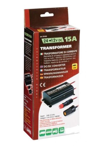 Input 24V / Output 12V / 15Amp continious / 180W / With cigaretplugs