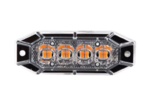 "? 12/24V ? 8W (8 x 1W) ? 8 Amber SMD LEDs ? Dimensions: 97.7*35.7*15.5mm ? Nominal Current @12V 0.70A ? Nominal Current @24V 0.35A ? Rated IP67 / IP69K ? ECE Reg 10/65 Class 2 ? CISPR25 Class 3 ? 11 Flash Patterns ? Polycarbonate Lens (Clear) ? Aluminium Base ? Screw / Surface Mount ? 98mm Bolt Fix Distance (?3mm hole) ? Height 3,5cm ? 210mm Cable Length ? Seal Ring & Glue Seal ? Operating Temperature: -40?C ~+60?C"