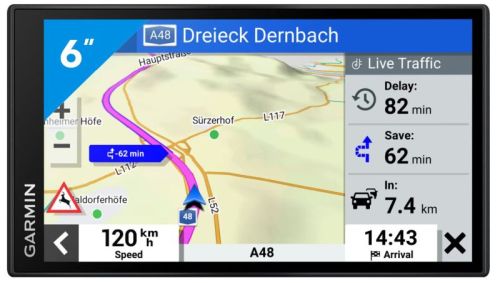 "With the Garmin DriveSmart 66 EU MT-S you can quickly and easily reach any destination in Europe. You can read your route from the anti-reflective 6-inch screen. The DriveSmart 66 is the first model with an HD screen. Another innovation compared to its predecessors is the environmental zone routing function that warns you when you are approaching an environmental zone. This way you avoid unnecessary fines. The navigation system warns you of dangerous traffic situations so that you are informed in time of accidents or sharp bends. Connect your device to your Garmin Drive app on your smartphone to also receive live traffic information. Thanks to the Tripadvisor reviews and the useful places function, you will always find the best restaurants and the best sights along the way. You can easily read your route from the razor-sharp 6-inch HD screen Avoid fines with environmental zone warnings. With traffic information via your smartphone you are aware of the current traffic situation on highways, provincial roads and in city centers. To receive live services such as live traffic, weather and gas prices, download an app, which may lead to additional mobile data charges. Supplied as standard: suction cup Car power cable (usb C to usb A) CLA adapter"