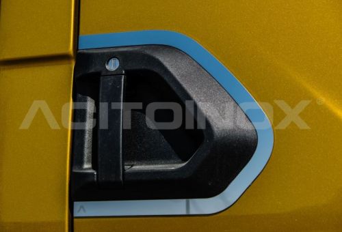 "? Door grip application for Volvo FH version 5, from model 2020 ? 2pieces ( 1 left & 1 right side) ? contour frames for the door grips, stainless steel ? highly polished ? double sided adhesive fixing "