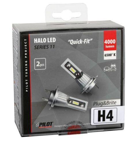 "? 12-24V Halo Led Serie 11 Quick-Fit - (H4) - 15W - P43t - 2 pcs - Box ? 6500K ? Super-brightness. Lumens exceed halogen bulbs, while light distribution match original bulbs. ? Easy installation with no modifications to the lamps. ? Special led chips of the latest generation. Extraordinary bright light, long life. ? Fanless heat dissipation. ? Cold technology, with no need of ventilation or additional heat sinks. ? Long life (25.000 hours). NOT APPROVED FOR ROAD USE. These bulbs are not road legal and are to be used for decorative purposes, for competition, circuit and off road only."