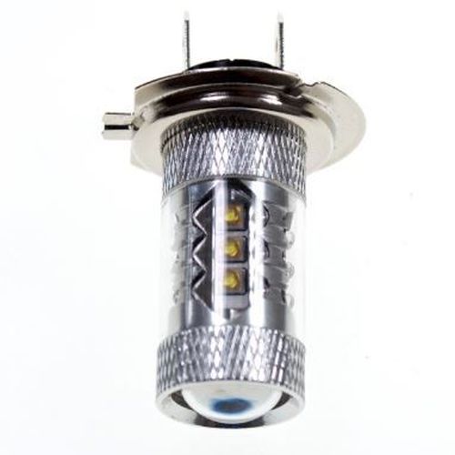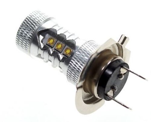 "A powerful H7 LED bulb that fits in the original H7 sockets. With 16 x 5W Cree LEDs, the bulb creates a light comparable to a 40W incandescent one. A special optic that sends light to the sides, back and forth. This ensures that the whole reflector of the lamp lights up. Color temperature: