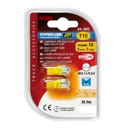 Ledlamp orange T10/24V 5-led SMD (2pcs)