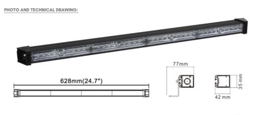 "12V + 24V / 36LED / L62,8cm x H3,5cm x D4,2cm / ECE R10 R65 / 6 type flash possible / 30W / With cigarette plug + 300cm cable"