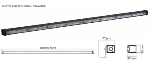 "12V + 24V / 72LED / L120,4cm x H3,5cm x D4,2cm / ECE R10 R65 / 6 type flash possible / 58W / With cigarette plug + 300cm cable"