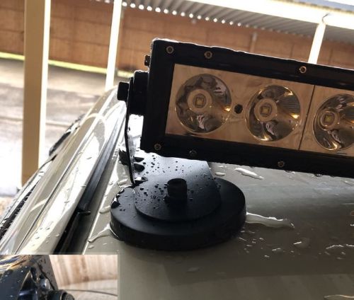 "? Installation of eg a LED bar suddenly became super easy! ? No need for drilling with these magnetic holders ? Small model - Recommended for small / medium LED bars (up to 30") These magnetic holders are delivered in pairs and are perfect if you want to mount an LED bar, work lights, auxiliary lights etc without affecting the vehicle with screws and drilling. Generally, a bar that is up to 30 "(80 cm long and 4 kg heavy) should work with the smaller model. NOTE: As the nature of the car (such as thickness of sheet metal, varnish etc.) and the size and weight of the lighting differ from case to case, common sense applies when mounting. Therefore, always ensure that the mounting can handle the intended use! In some exceptional cases, the magnetic holders may be defective for the task and another type of mounting may be more secure. Number of magnets: 12 pcs (6 in each foot) Length: 185 mm Width: 65 mm (foot) Depth / Height: 80 mm (from the feet up to the upper edge of the holder) Distance to attachment point: 57 mm (from the plate located on the feet to the center of the mounting hole)"