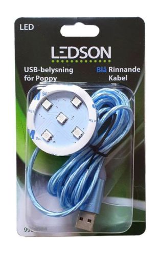 ?Poppy lightplate with blue light ?Red or blue "running" cable light effect ?Cable length: 200 cm ?Powered via USB-port ?With 5 pcs LED ?3M tape included