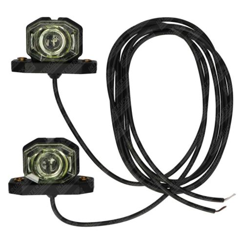 "2 PIECES !! Marker light LED 24V. Plastic housing, yellow lens unit made of impact-resistant polycarbonate. With cable 1.25 m. T?V/ADR/GGVS approved. IP68.Length: 100 mmWidth: _46 mmHeight: _59 mmCentre-to-centre distance: _76 mmBolts: M6 "