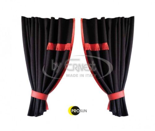 ? BLACK curtains ? Finished with black leather strap ? Height 2x 100cm ? Length 2x 215cm ? 2 curtain holders leather black ? No frills ? Hooks for hanging curtains included ? Glides for rail truck NOT included