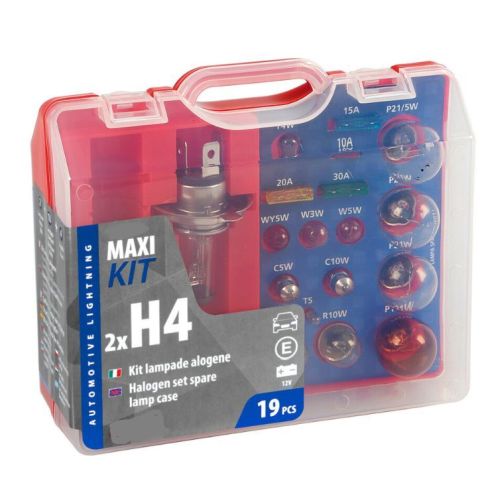 "Spare lamps kit 19 pcs, 12V - 2x H4 halogen 15 lamps + 4 fuses set. European homologation"