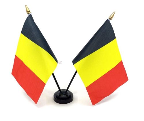 Set of two table flags. The set consists of two flags and a black flag holder. Height of the flags: 28cm. Width of the flags: 20 cm