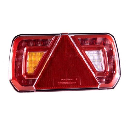"Tail, stop, indicator, fog, reverse, reflector. L25,3cm x H13,3cm x D3,2cm The lamp has 38 LEDs. Characterized by a power of 0,3 W, 2 W, 2,2 W, 4,5 W, 2,2 W. The lamp is a certified product. According to standards such as ECE R3, ECE R6, ECE R7, ECE R10, ECE R23, ECE R38. Moreover, it is made of materials: Lens: PMMA/PC, Housing: ABS. Fastening is screw. The voltage is 12/24 V LED quantity