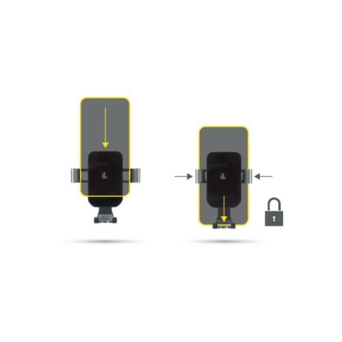 "Graviton, clip phone holder ? Easy and fast mounting. ? Push and hook system for quick attachment to the air vent fins. ? Suitable for devices with width from 60 to 85 mm"