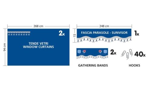 BEIGE / Contains: 2x side curtains / 1x windshield curtain 15cm / 2x curtain holders / 40 hooks