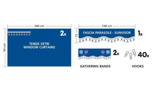 RED / Contains: 2x side curtains / 1x windshield curtain 15cm / 2x curtain holdels / 40 hooks