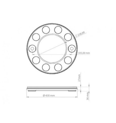 "Price per piece / Diameter inner circle 23,5cm / For mounting on steel rim / RAL 5002 "