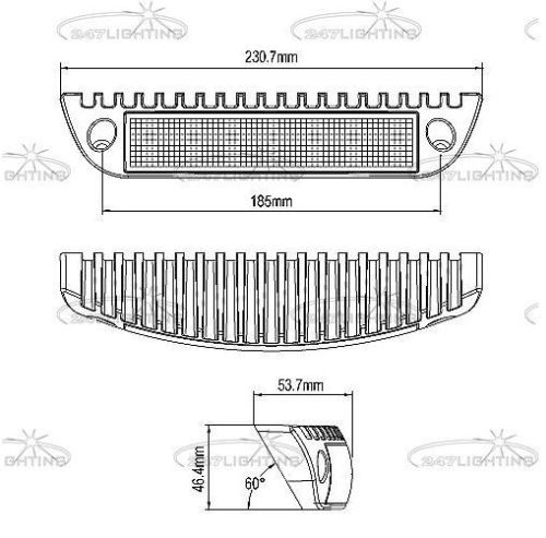 12-28 Volts 18 Watts 1350 Lumens 18 LEDs 60? Downward Illumination Angle Rated IP67 Polycarbonate Lens Aluminium Alloy Housing Shock Resistance 20g Stainless Steel Mounting Bracket Colour Temperature: 6500K ECE Approved Reg 10 EMC Approved Operating Temperature: -40C to +50C Nominal Current: 1.07A @ 12V Nominal Current: 0.56A @ 24V