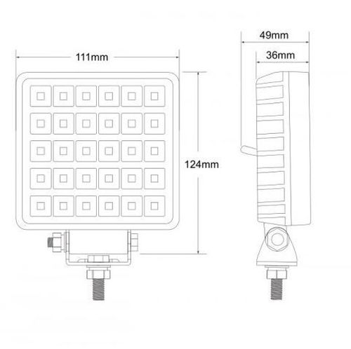 "10-30V / 30LED / 30W / IP67 / focus beam / 6000K / 3800 Lumen / PS lens / Aluminium housing / cable 25cm / ECE R10 / With switch / 11,1cm x 12,4cm x 3,6cm"