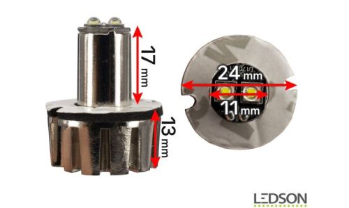 "LED warning light / strobe for hole mounting to be mounted, for example, in auxiliary lights or vehicle headlights for a unique and eye-catching styling effect! 26 different strobe patterns to choose from (also a non-strobe light) ECE R10 (EMC shielded) With two LEDs per light Up to 15 units can be synchronized 3 meter cable for easy installation Double-stitching on the top of the base to secure the light to the installation hole Xenon white, orange or blue light (select version) Single or couple (choose version) Base diameter: 24 mm Top diameter: 11 mm Base height: 13 mm Top height: 17 mm Height total: 30 mm 3 meter cable Red cable = + Black cable = - Yellow cable = Select strobelight pattern White cable = Syncronize multiple strobelights "