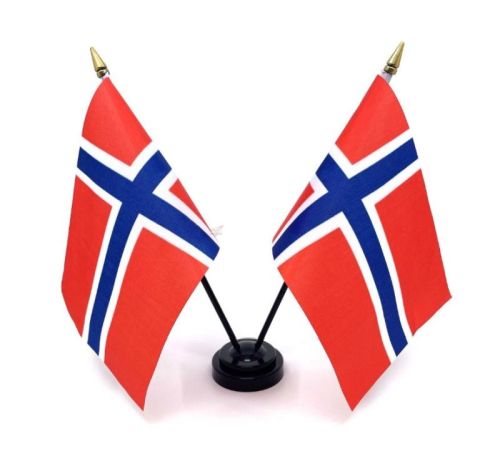 Set of two table flags. The set consists of two flags and a black flag holder. Height of the flags: 28cm. Width of the flags: 20 cm