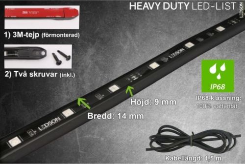 "IP68 (pleine eau / ?tanche ? la poussi?re) Pr?-mont? avec du ruban adh?sif 3M ? l'arri?re Peut ?galement ?tre viss? avec deux vis (fournies) Longueur: 120 cm Couleur: blanc froid Uniquement pour 24V Largeur: 14 mm Hauteur: 9 mm Longueur de c?ble: 1,5 m"