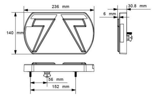 "? Led - feu arri?re - 12V - glo trac - 6 fonctions - 5 broches - droite ? Fonctions : Feu de circulation / Feu arri?re / Clignotant / Feu antibrouillard / Feu de plaque d'immatriculation / R?flecteur ? Dimensions : 236 mm x 140 mm x 30,8 mm"
