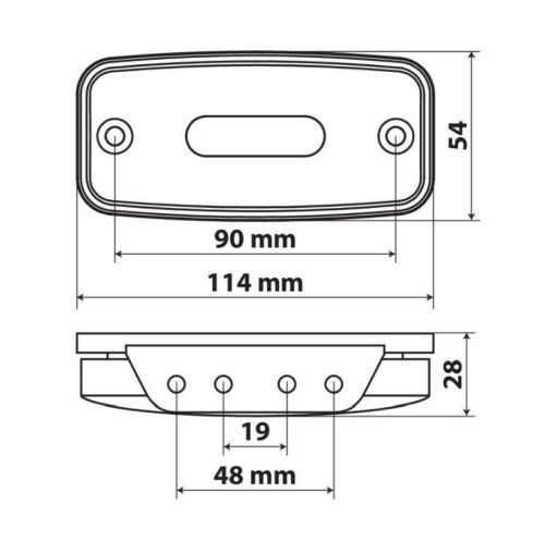 Feu de position 4LED rectangulaireorange + support 12/24V