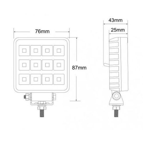 Feu de travail carr? 12LED 12/24V 1800Lumen + interrupteur