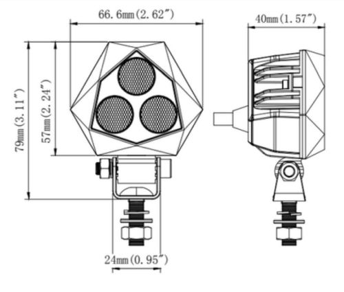 Feu de travail mini ? 3LED triangle12V/24V 911Lumen