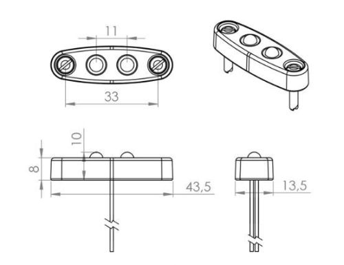 Feu position mini 2LED orange 10-30V (bo?tier noir ovale)