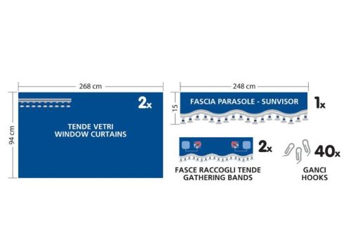 BLEU / Contenue: 2x rideaux lat?rales 94cm / 1x rideau pare-brise 15cm / 2x embrasse pour rideau / 40 crochets