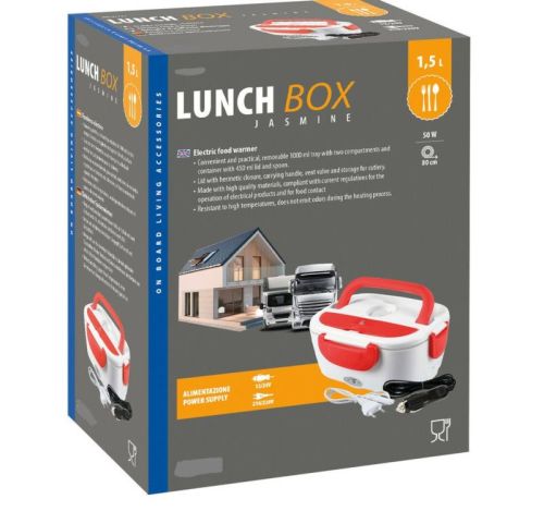 "Lunch-Box, chauffe-plat ?lectrique - 1,5 L - 12/24V+220V - 50W Pratique et pratique, plateau amovible de 1000 ml ? deux compartiments et r?cipient avec couvercle de 450 ml et cuill?re. Tous les accessoires inclus sont lavables ? la main ou au lave-vaisselle. Couvercle avec fermeture herm?tique, poign?e de transport, soupape d'a?ration et rangement pour couverts. Indicateur de fonctionnement ? LED marche/arr?t Fabriqu? avec des mat?riaux de haute qualit?, conformes aux r?glementations en vigueur pour le fonctionnement des produits ?lectriques et pour le contact alimentaire R?sistant aux hautes temp?ratures, ne d?gage pas d'odeurs pendant le processus de chauffage. Prise allume-cigare 12/24V et prise murale 220V c?ble de 80cm Dimensions : 350x170x110 mm "