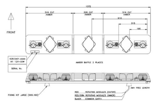 Rampe lumineuse "Rotator" 137cm orange 24V (4-rotors)