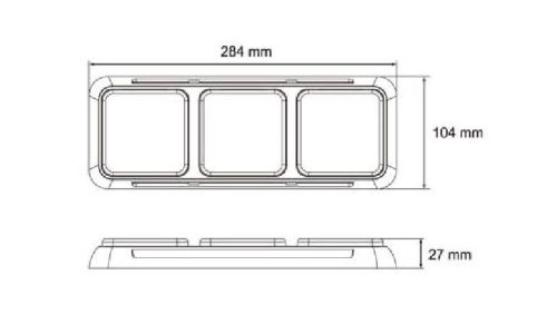 Achterlicht voor trailer / 284mm x 104mm x 27mm / 12V-24V / 4 functies (stop-achter-pink-mistlicht)