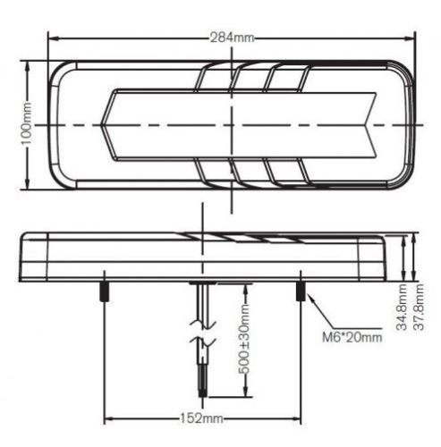 "?12-24 Volts ?Montage links of rechts ?28,4cm x 10cm ?5 functies (achterlicht/stop/pinker/mist/achteruit) ?dynamische pinker"