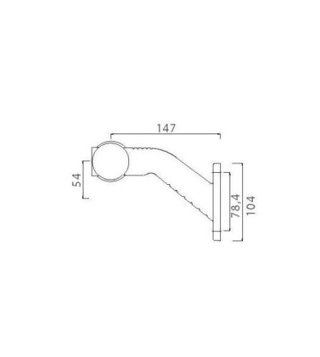 "Model RECHTS / Pendellamp. Wit/Rood/oranje. Geheel rubber. schuin model. 24V, links, kabel 4 m met open eind. T?V/ADR/GGVS gekeurd. IP69K. Lengte: 180mm Hartafstand: 78mm Bouten: M6"