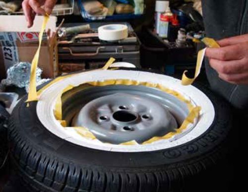 "De witte verf voor zijden van banden werd ontwikkeld in Ijsland. In de verf bevindt zich een bestanddeel (gedeeltelijk gemaakt van thinner) dat de verf dunner en gemakkelijker aan te brengen maakt. Dit geheime onderdeel van de formule is een vloeistof die bij het rubber wordt gevoegd en die verhindert dat het rubber volledig hard wordt. De verf wordt eigenlijk maar voor 50 % hard en daardoor worden barsten vermeden tijdens het rijden. Ook aanbevolen voor het markeren (letters) van banden of de vernieuwing van eerder aangebrachte witte flanken. Deze verf is perfect voor diagonaal (nylon) banden ; maar voor radiaal banden met zachte wanden zullen bij sommige types barsten ontstaan. Daarom wordt de witte bandenverf enkel aangeraden voor diagonaalbanden. Het gebruik van deze verf op radiaalbanden is steeds op verantwoordelijkheid van de gebruiker. Inhoud: 250 ml (geschikt voor 3 ? 4 zijdes) GEBRUIKSAANWIJZING : 1. Schuur de band zodat alle oneffenheden of letters weg zijn (korrel 180). Dit mag ook met een schuurmachine gebeuren. Hierna kan u nog fijner schuren (korrel 400) om een effen ondergrond te bekomen. 2. Reinig de banden grondig met een verfverdunner of silicone-verwijderaar (die niets achterlaat na het verdampen). Gebruik hierbij meerdere katoenen doeken om de te schilderen oppervlakte goed voor te bereiden. Herhaal deze behandeling tot er geen vuil meer op de katoenen doek achterblijft na de reiniging, ook als je dit tot 10 maal moet herhalen. 3. Om een perfect ronde geschilderde lijn te hebben is het best de randen van de gewenste witte rand af te plakken met de gebruikelijke carrosserieplakband. Na het schilderen deze randen lichtjes insnijden om te vermijden dat de verf afbladert bij het verwijderen van de plakband 4. Schud en roer de verf goed om. Breng 3 lagen witte bandenverf aan met een tussentijd van 24 uren per laag Na de laatste laag de banden minimum 24 uur laten drogen alvorens te gebruiken. Gereedschap kan je met terpentine (White Spirit) reinigen. De verf wordt aangebracht met de borstel en is tamelijk dik voor een goede dekking en kleefkracht. De eerste laag dekt verbazingwekkend goed, de tweede laag verzegelt de band volledig en de derde laag zorgt ervoor dat de witte verf nog sterker wordt en beter bestand is tegen kleine ongelukjes, zoals tegen een borduur rijden. De verf droogt traag zodat alle borstelstrepen verdwijnen. De kans bestaat dat door de witte verf heen een bruine (of gele) rubber-schijn zichtbaar zal worden. Wanneer er 3 lagen verf aangebracht zijn zal deze verkleuring eerder gering zijn. Bij splinternieuwe banden kan dit echter een probleem zijn, er zijn dan 4 tot 5 lagen verf nodig om deze verkleuring in te sluiten. Indien de verf gespoten wordt, verdunnen met een tolueen-thinner. Om de witte flanken vrij te houden van water en vuil is het aangeraden om voor de eerste rit twee tot drie lagen bandenreiniger op de flanken te spuiten. Het is ook een goed idee om bandenreiniger in de auto te hebben om indien nodig na een rit het vuil en vet van de witte flanken te verwijderen. WAARSCHUWING : Buiten bereik van kinderen houden. Schadelijk of dodelijk wanneer ingeslikt. Indien ingeslikt onmiddellijk medische hulp inroepen. Vermijd contact met de ogen. In geval van contact met de ogen, onmiddellijk en overvloedig spoelen met proper koud water. In geval van onvoldoende ventilatie tijdens het gebruik de passende ademhalingsbescherming dragen."