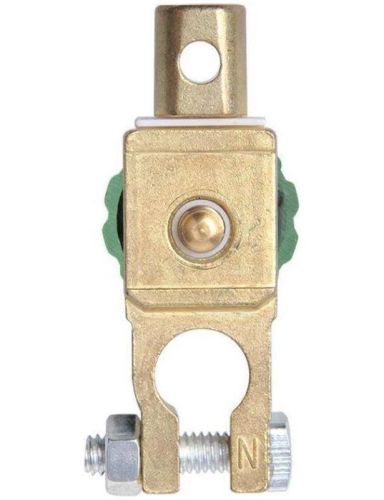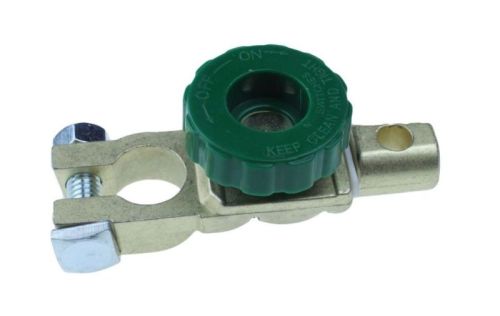 "Heel praktisch om snel en gemakkelijk de stroom van een accu af te halen. Ideaal voor auto?s die slechts af en toe de weg op gaan. De stroomtoevoer wordt uitgeschakeld door het groene wieltje los te draaien tegen het leeg lopen van het accu en te gebruiken als anti diefstal systeem. Dit onderdeel past universeel bij accu's van 6V, 12V en 24V. Zet de hoofdschakelaar op de negatieve pool van de auto-accu en sluit vervolgens de accukabel op de onderbreker aan. Draai eenvoudig de knop los en de stroomkring zal onderbroken zijn. "